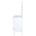 Lighten and brighten your bedroom storage ensemble with a modern ten-drawer dresser and mirror combination. In clean, fresh white, the set delivers abundant storage and organization with four smaller upper drawers and six larger drawers underneath. The mirror on top adds a finished look, while offering reflectivity and airy ambiance. It shows off a double bowed front silhouette, augmented with the intriguing texture of natural rattan drawer fronts that enhance its casual, coastal character. Petite round knobs and tapered legs complete the look with refined, restrained elegance. Key Features: • Coastal details highlight a modern ten-drawer dresser and mirror to bring compelling, fresh style • Crisp white finishing complements poplar and engineered wood, with rattan accents to create texture • Four small and six large drawers create ample storage for accessories, clothing and personal effects • A framed mirror adds dimension while rattan drawer fronts create approachable style and texture • Top drawers include black felt lining, adding protection for delicate items