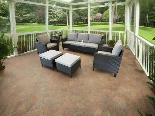 Sun West OutdoorGrey wicker patio outdoor 5pc set with 3 seater - sofa and 2 armchairs and 2 ottomans- gray cushions seat 7 people. Pick up at Sun West Furniture,...