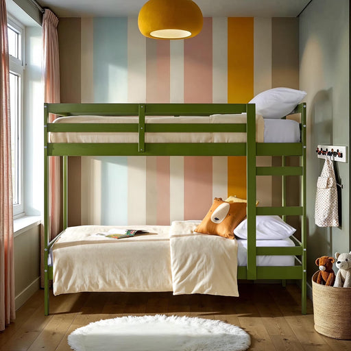 Walker Edison Modern Solid Wood Twin Over Twin Bunk Bed, Olive Green