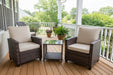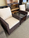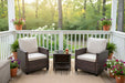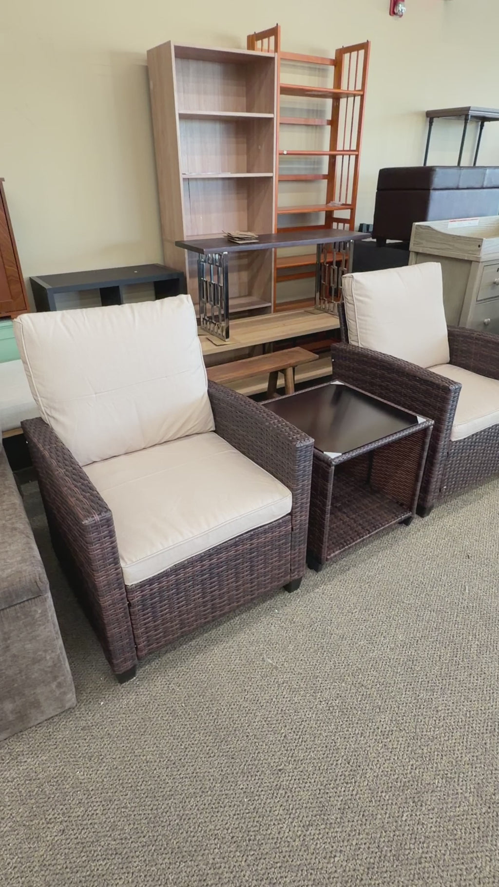Brand new 3 Pc Patio Outdoor Chairs and Table Brown Wicker Beige Cushions