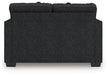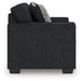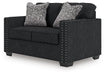 This stunning loveseat leaves a lasting impression. Its cozy cushions, chic coal-colored upholstery and striking nailhead trim are a perfect blend of comfort and contemporary design. And here's the showstopper‚ ambient red, white and blue LED lighting along the loveseat's base. The look is simply wow.