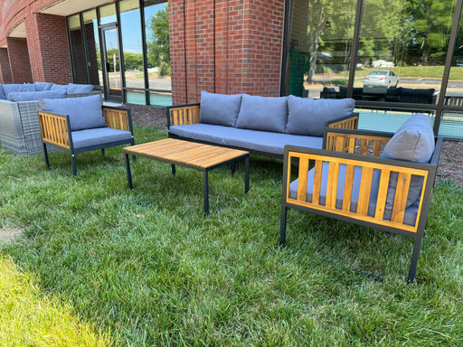 Wood and Metal Frame 4Pc Patio Outdoor Set With Grey Cushions