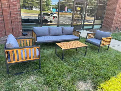 Wood and Metal Frame 4Pc Patio Outdoor Set With Grey Cushions
