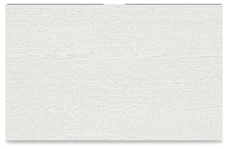 Dare to take minimalism to the max. This chest of drawers has an air of sleek simplicity thanks to its white painted finish with subtle replicated wood grain. Magnificently mod splay legs are a compelling complement to the streamlined design. And with two sets of faux leather drawer pulls that allow you to customize the chest to suit your space, there's no doubt about it: This contemporary piece is sure to become a classic.