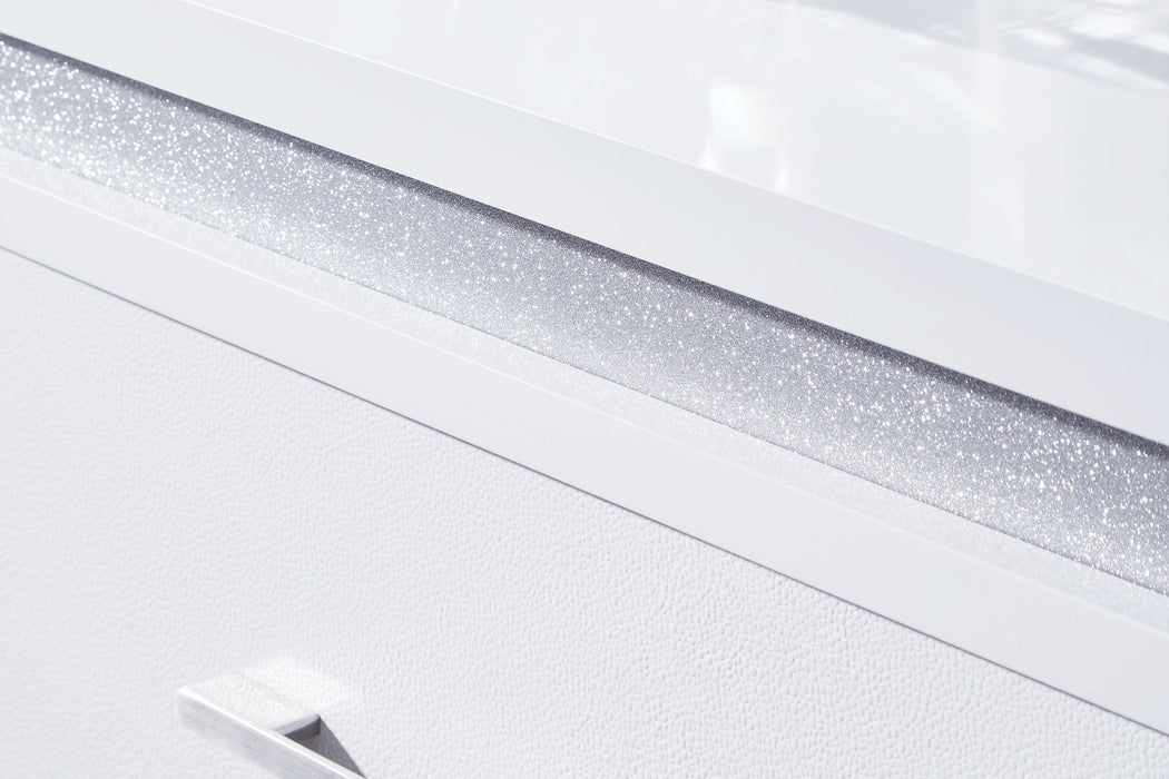 This dresser is a showstopper, bringing a touch of modern glamour to your sanctuary. A sleek white finish and inset glitter accents create a sophisticated feel, while spacious drawers provide practical storage. It’s a simply stunning way to achieve the bedroom of your dreams.