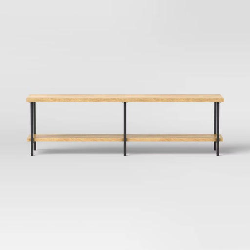Rectangular TV stand makes a great addition to your entertainment space Slim, clean-lined structure adds modern style Top and bottom woo...