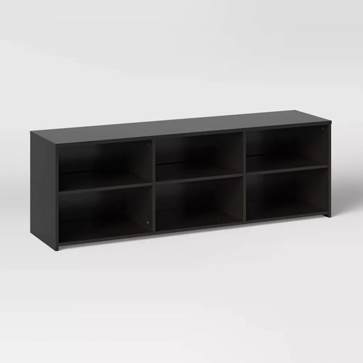 Rectangular TV stand makes a great addition to your entertainment space Slim clean-lined structure adds sleek modern style 6 open shelve...
